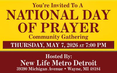 By Sarah Shurge – Save the date! You’re invited to a National Day of Prayer gathering on Thursday, May 7th, at 7 p.m. The event is hosted by New Life Metro Detroit (39390 Michigan Ave.) in Wayne. Local churches from across the community are coming together in unity to pray...