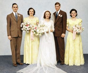 Henry and Emma were marrried on February 9th 1946. Pictured is the wedding party Bestman Harold Holland, Anne Holland, Bride Emma and Groom Henry Timmermann, and sister Liz Dunkel.