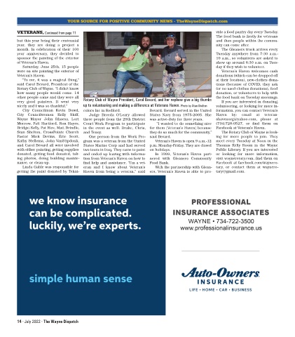 nance, or clean-up. find help and assistance. “I’m a vet- Food Bank. Facebook at facebook.com/waynero-